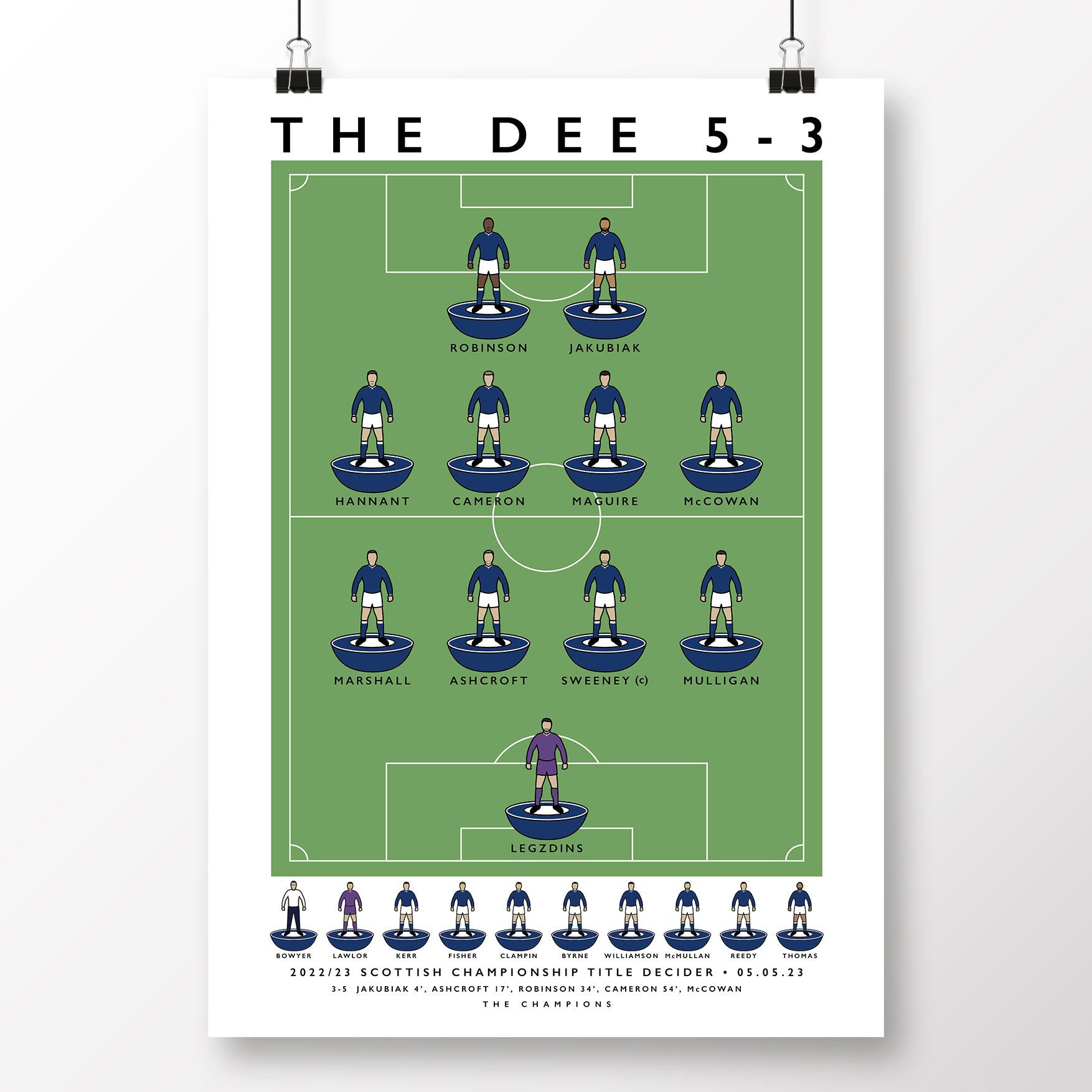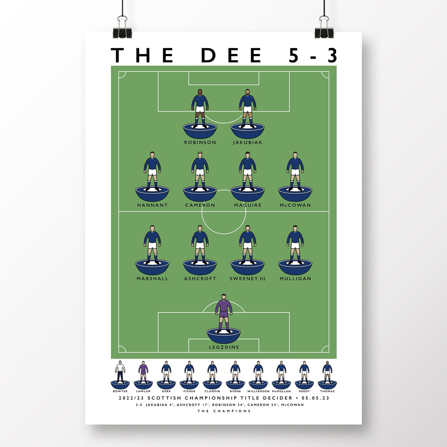 Celebrate Dundee's recent title victory with this beautiful print! The 'Dundee 5-3 Queens Park' print by Matthew J I Wood Design is the perfect way to keep the beautiful memory of their incredible win alive. The bold yet minimalistic design looks stunning and complements any wall, no matter your style.