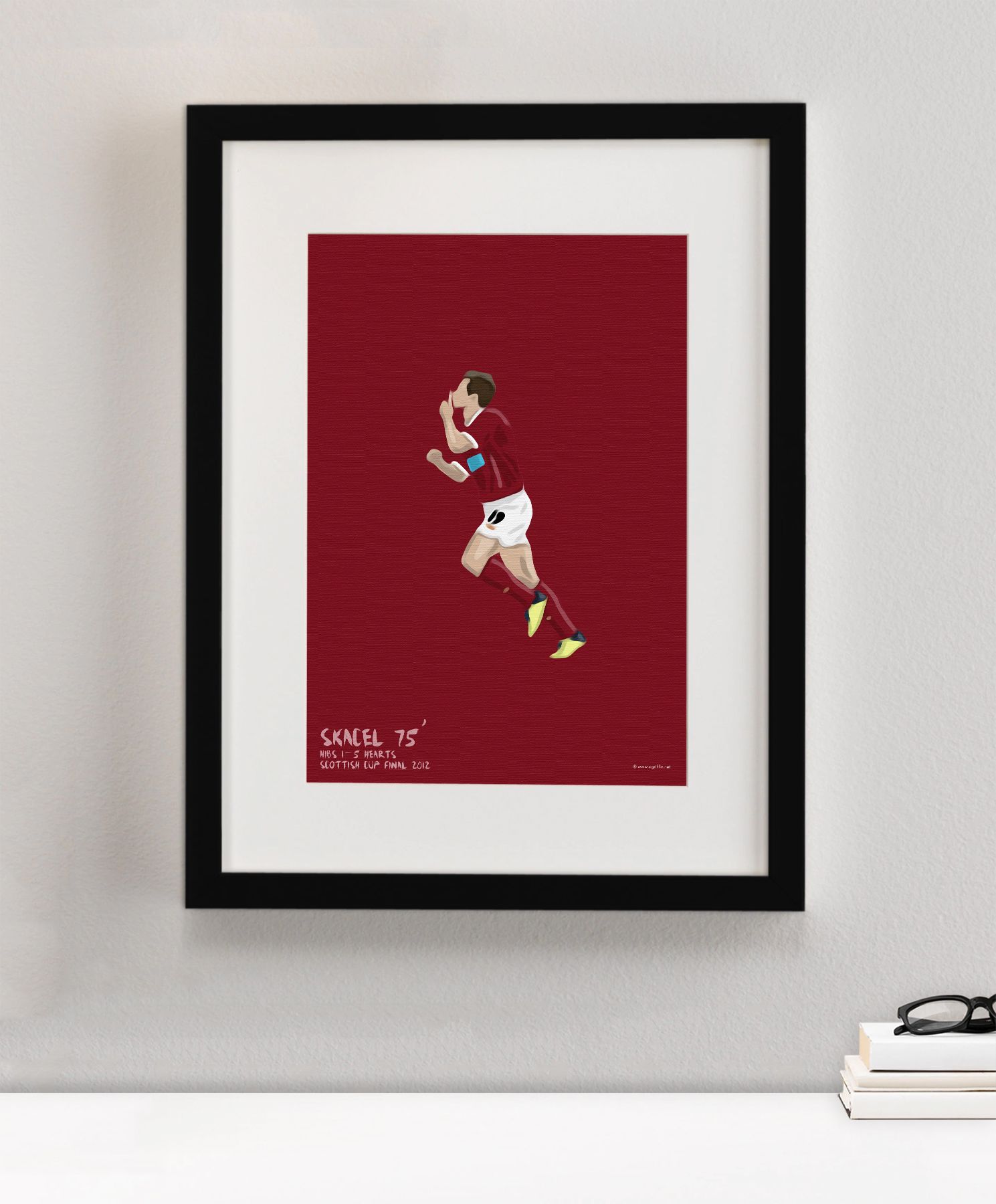 Capturing a day which Hearts fans recall as the moment professional football could be ended as it couldn’t get any better. This print depicts Rudi Skácel celebrating Heart’s fifth goal in their 5-1 William Hill Scottish Cup Final victory over Hibernian in 2012.