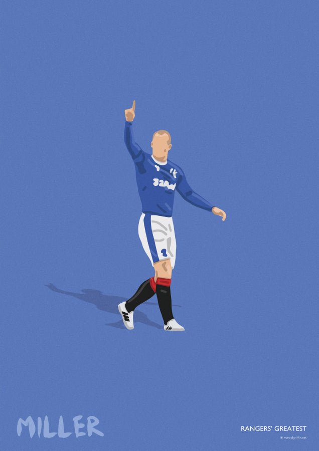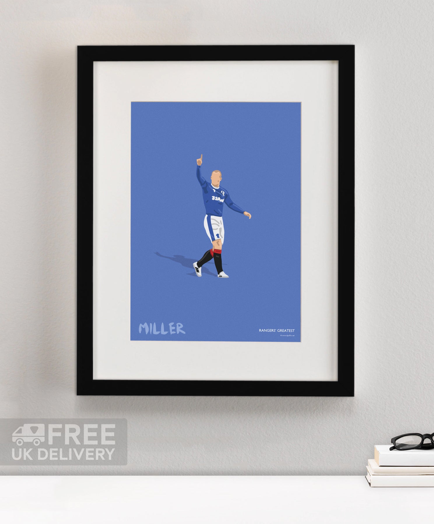 There is no doubt Kenny Miller divides opinion. However, this print is for those Rangers fans who can remember the good times, particularly when Walter Smith brought him back for his second spell at the beginning of the 2008/09 season in which was the first of 3 consecutive titles for the Ibrox club.